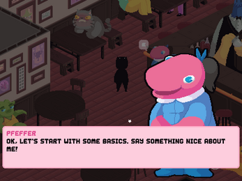 Honestly, I'm usually terrified of saying the wrong thing - especially in video games, where a wrong move could mean anything from being locked out of the "good" ending or having the character be soured to the interaction and lose interest in you. It can quickly turn into a game of being everyone's yes man and worrying about saying the "correct" option all the time. It surprised me when Pfeiffer told me it's okay to make missteps when talking to people. I've never heard that in a game before! I was still a bit cautious, but this idea really shone through when talking to Baobabo. I suggested the AU option for his story, and though he initially wasn't fond of the idea, he really took a shine to it as the conversation went on! It ended up being my favorite dialogue in the chapter. I can't wait to play the rest!